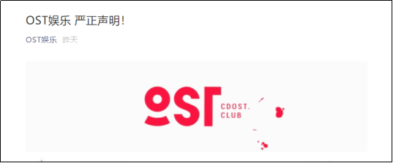 同一天,OST娱乐官方微信号发了《OST娱乐 严正声明!》,回应此事。OST娱乐称“近日星晴文化多次发布、转载‘OST娱乐挖挂靠公会主播、单方面撕毁合作条约’等不实言论,我这种无中生有、颠倒黑白的行为,对OST品牌形象及名誉造成巨大损失”,并表示针对此次严重侵害OST娱乐名誉事件,将通过法律途径追究侵权者的全部法律责任。