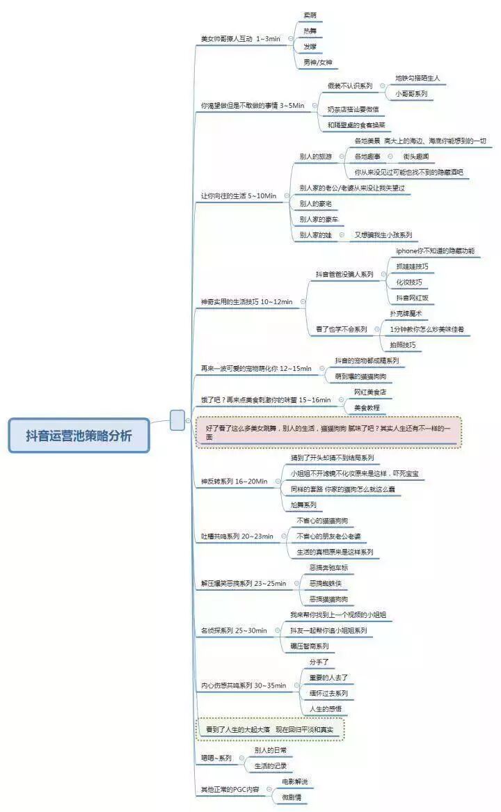 至于运营池怎么控制,可以有个内容主题类型的配比策略,就好像你要准备一道满汉全席,主菜多少,配菜多少,都是经过精密安排的,假如有一天抖音全部都是小哥哥小姐姐视频,你可能5分钟就腻了,所以必须不断调控运营池里面的内容,保证合理的比例。