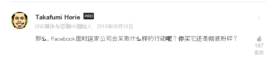 今年8月发表在日本福布斯网站上的一篇关于tiktok的文章下有一条评论:(面对tiktok的大热)Facebook会采取什么行动,收购还是摧毁?