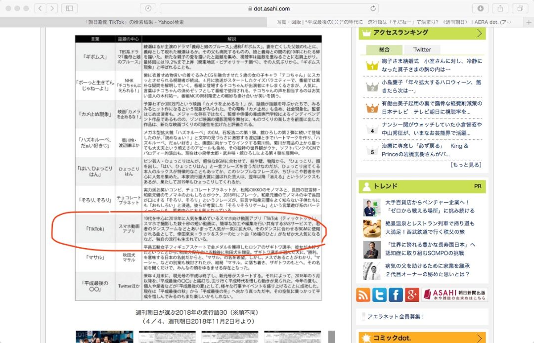 《周刊朝日》评选的2018年度关键词