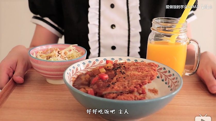 因为答应要给粉丝发福利,一个月前,芋头穿着女仆装做了一次咖喱猪排饭。但录完视频之后觉得特别羞耻,到现在她都不敢看评论区,如果谁跟她提起这个视频她就假装听不见。