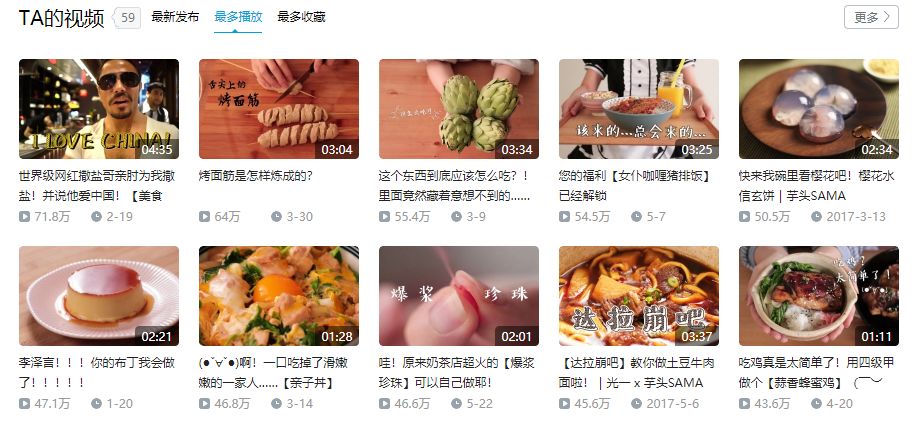 在B站投稿的一年多时间,芋头用近60个美食视频吸引了70万粉丝。这样的速度也许并不算快,不过,B站粉丝的粘性非常高,这一点榜妹接触过的其他视频创作者也有提到。