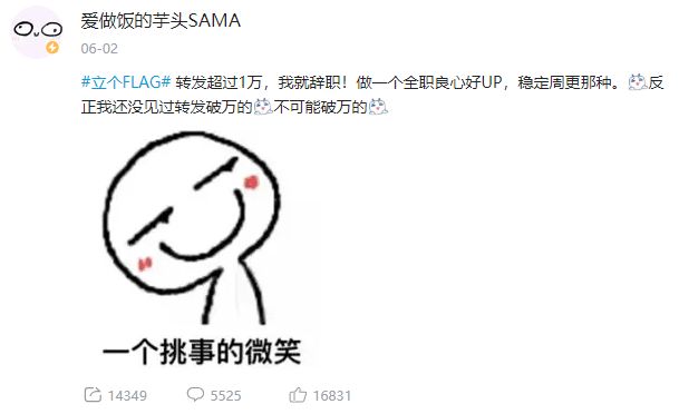 这个月初,芋头在B站上发了一条动态说,转发过1万,就辞职做个全职的视频UP主。