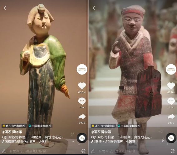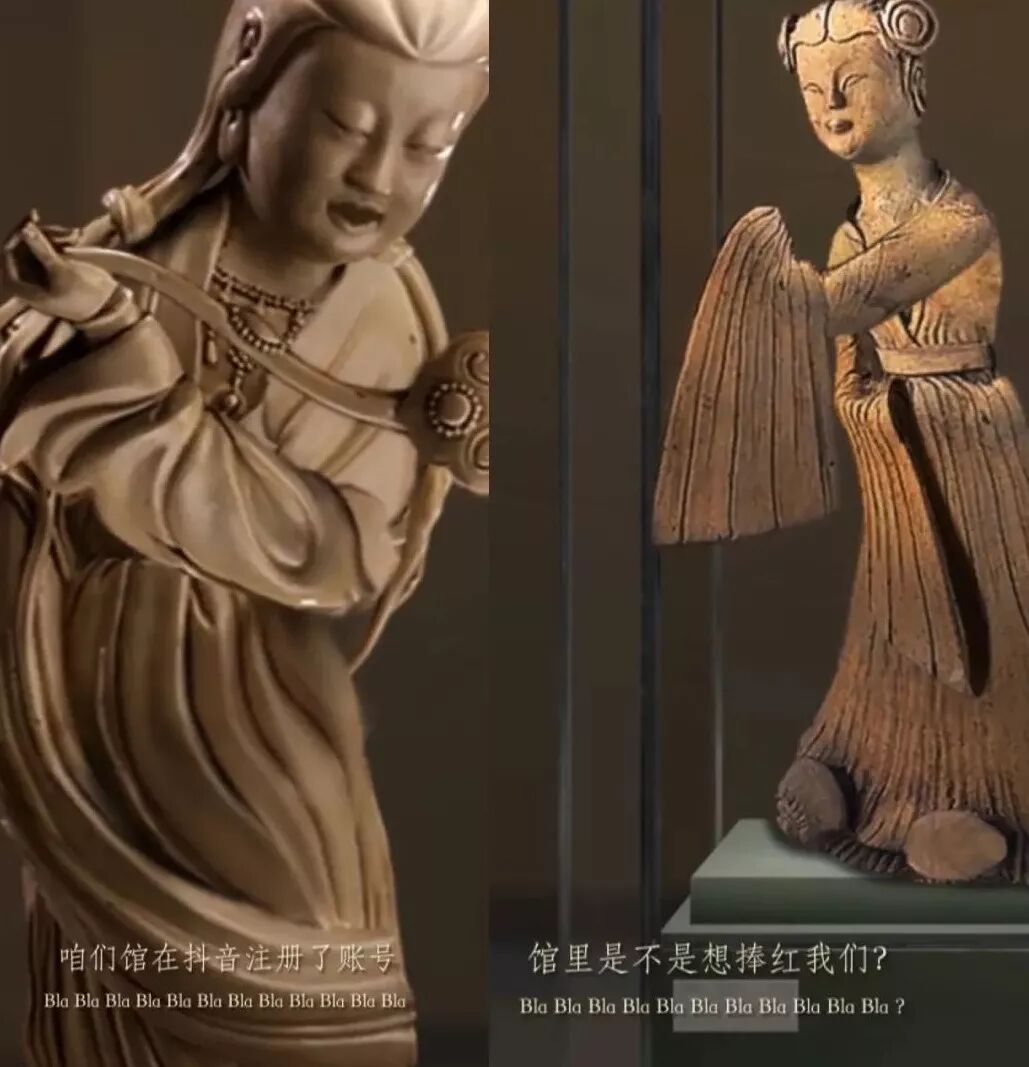 一脸端庄的博物馆文物撞上魔性抖音元素,反差萌感强烈突显,立马承包了新一轮的刷屏。