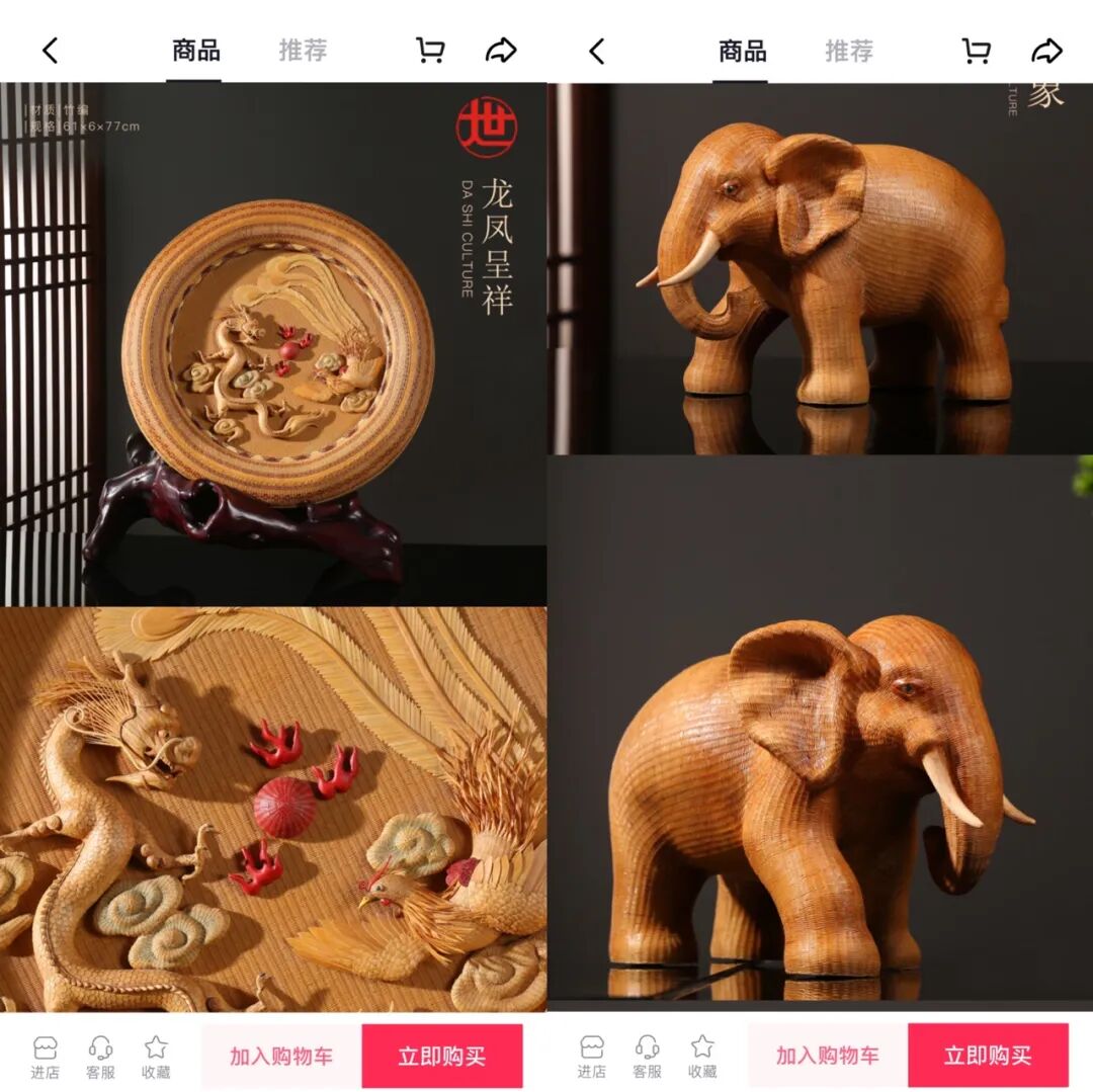 在何红兵的抖音小店,一件长23cm的竹编吉象摆件售价在2880元,宫廷风龙凤呈祥的龙凤盘摆件售价更是超过3万元,这需要极强的信任才能实现交易。