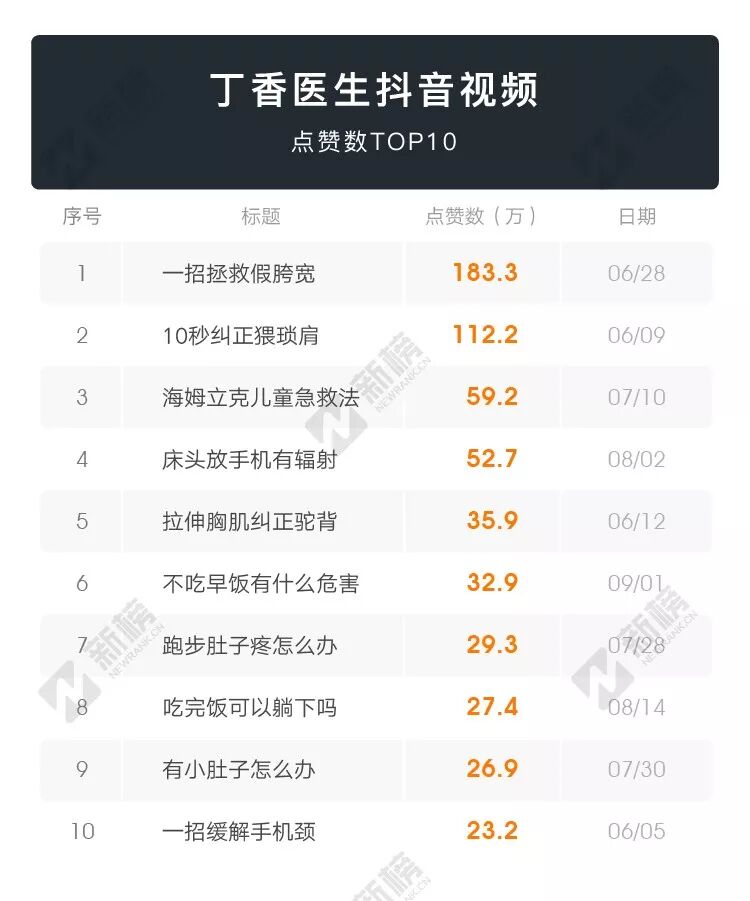 作为新榜微信500强的头部大号,“丁香医生”在图文领域取得的内容创业成绩骄人,如今在短视频领域,他们也闯荡出自己的一片天。