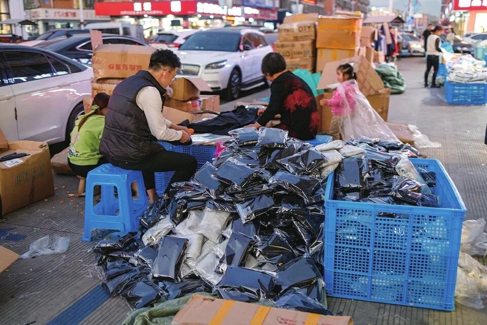 几乎同一时间,距离广州1167公里的浙江义乌市北下朱村,也呈现出一片忙碌的景象。