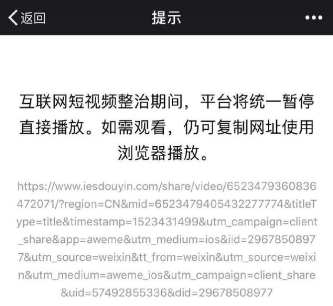 4月11日开始,微信里不能直接播放短视频外链了。据新京报报道,近日快手上有播主粉丝增长减少九成;易观智库的数据显示,4月11日起往后数三天,今日头条的用户使用总时长下降约1千万小时,日活也下降了1千万。