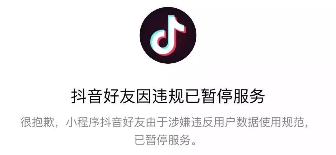 目前,小程序“抖音好友”由于“涉嫌违反用户数据使用规范”,已暂停服务。