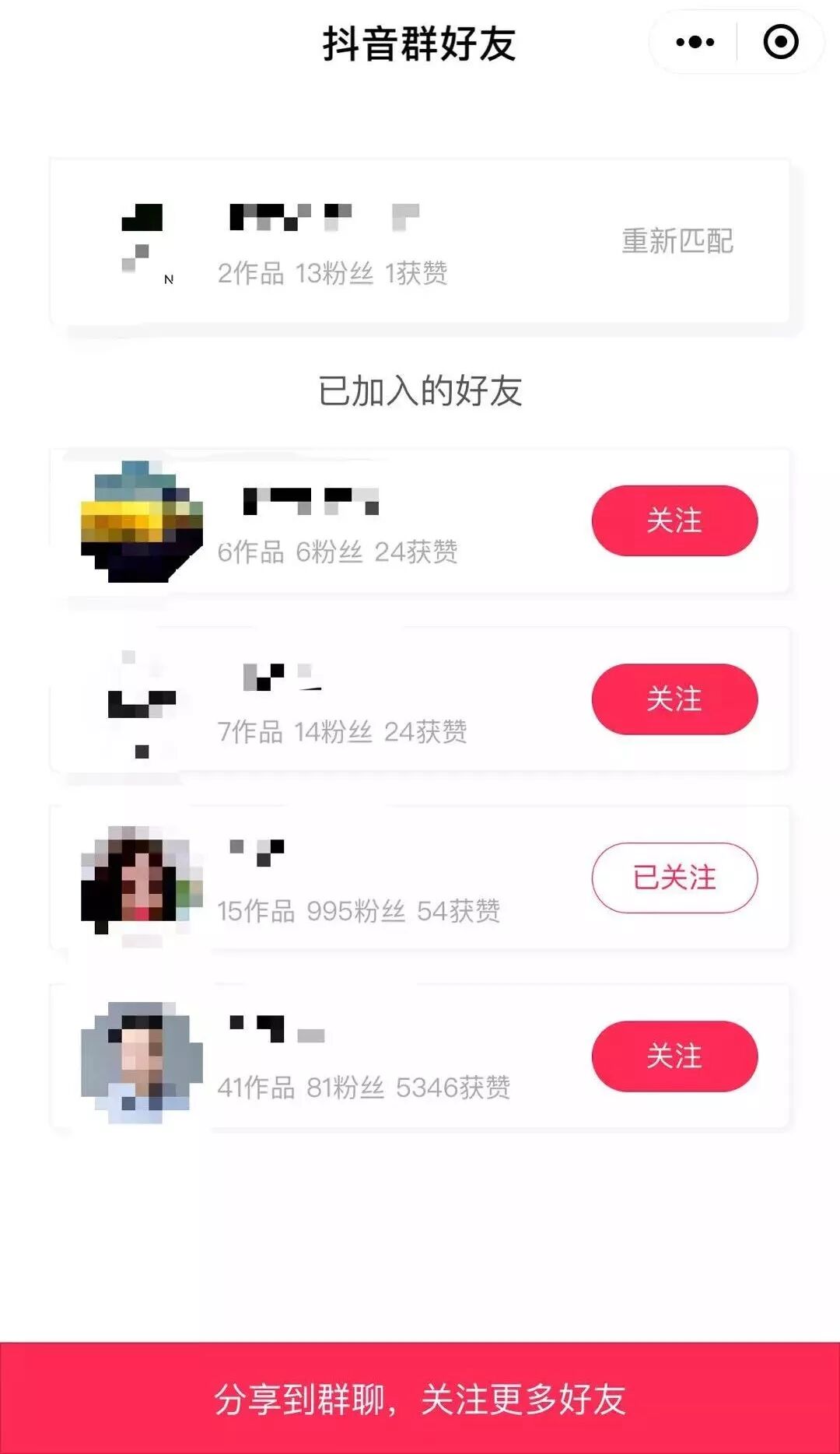 新榜讯 7月3日,抖音上线小程序“抖音好友”。用户可以利用小程序查看群中使用抖音的好友。
