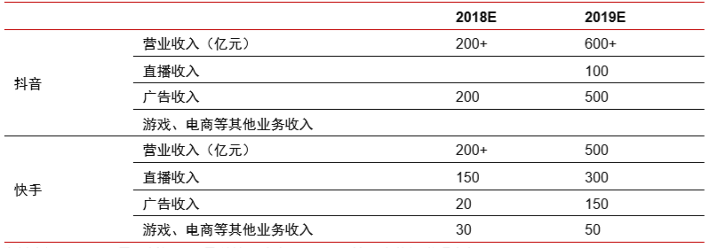 下面这张表来源于多家媒体和券商的研报数据,虽然数据是不完全披露和预估收入,但可见抖音和快手在商业化上的竞争端倪。